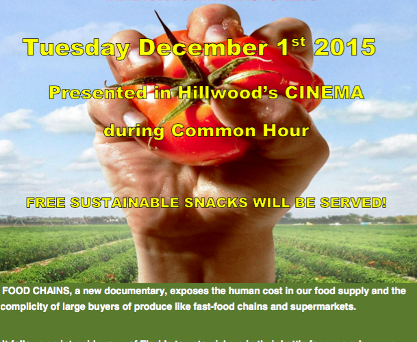 With support from Sustainable Post and the Sociology department, Sarah Pomerenke and I showed the film “Food Chains” at LIU Post. This event is part of a semester long campus focus on food and waste issues. As a graduate intern with Aramark, Sarah has worked on sustainable campus food issues. I was inspired to show this film on campus after viewing it at a community event hosted by Rural Migrant Ministries. This organization loaned us photography from the movie. We displayed these photos at the film screening and at other events on campus.